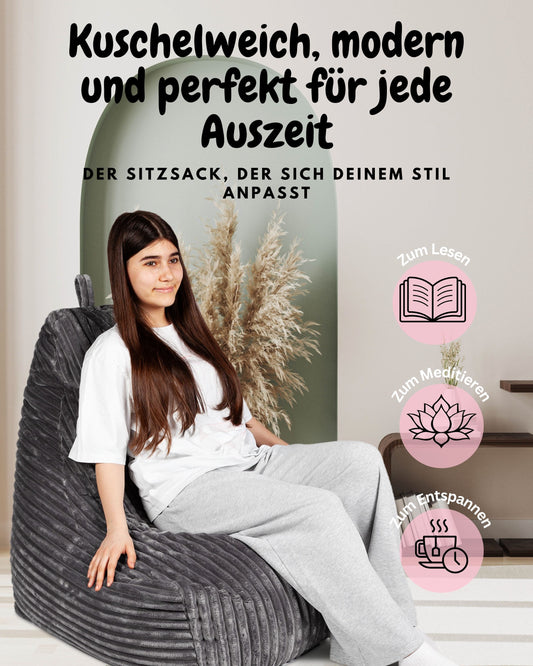 Entdecke unsere hochwertigen Cord-Sitzsäcke – bequem, stylisch und perfekt für jedes Zuhause. In verschiedenen Farben und Größen erhältlich.