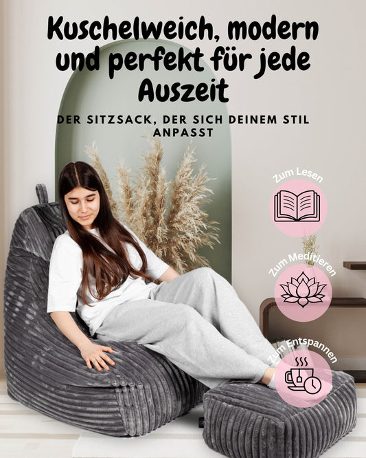Cordino Drop Sitzsack aus Breitcord – Stylischer Komfort für jedes Zuhause - GraphitZum ProduktNormaler Preis €89,00 EURNormaler PreisStückpreis / pro€169,00 EURVerkaufspreis €89,00 EURSale