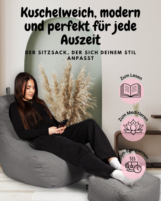 PatchHome Comfortline-Teddy-Sitzsack-Lounge Sessel mit Hocker - Grau