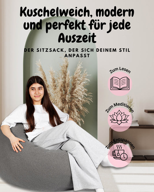 Entdecke unsere bequemen Teddy-Sitzsäcke – die perfekte Kombination aus Komfort und Design. Ideal für Wohnzimmer, Schlafzimmer oder Lounge-Bereiche.